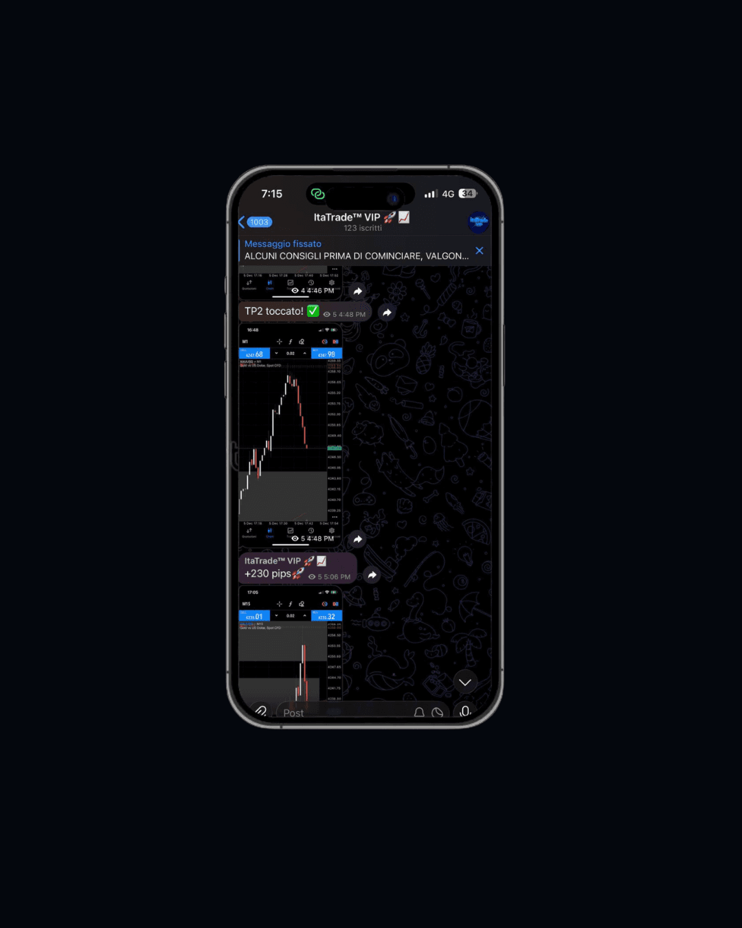 Inizia dal canale gratuito, segui il nostro approccio su GOLD & Forex e, quando ti sentirai pronto, entra nella sala segnali ItaTrade™ VIP